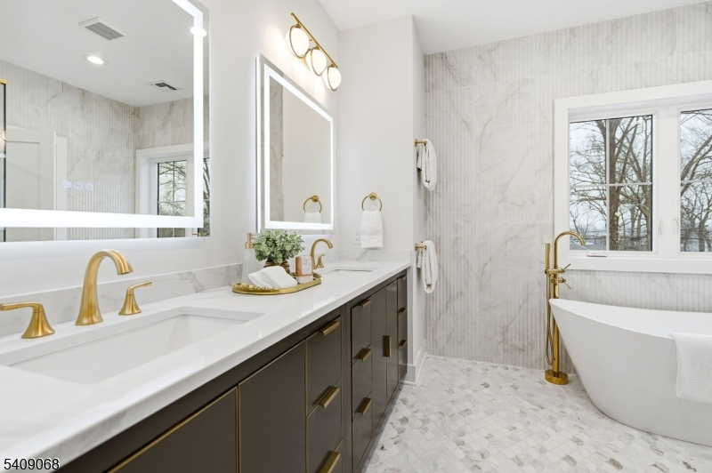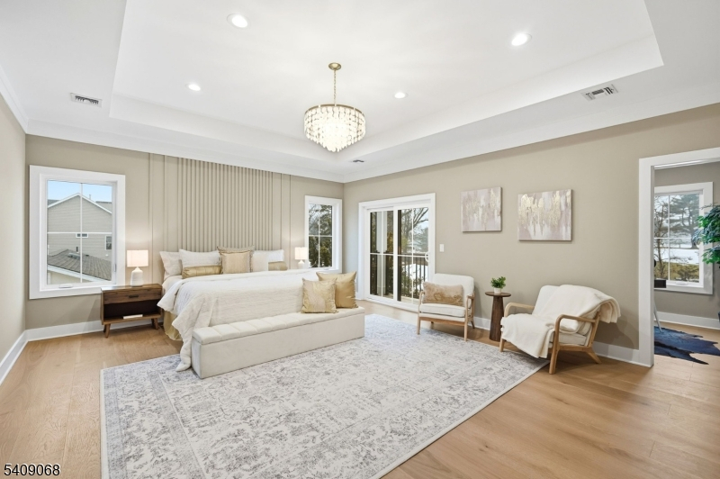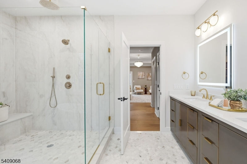 Nestled on a beautifully proportioned, flat 0.36-acre lot with a backyard facing the golf area in the sought-after Riker Hill section of Livingston, this exceptional NEW CONSTRUCTION Center Hall Colonial offers over 5,500 sq ft of refined living across three impeccably finished levels. The home features 6 bed/6.5 bath, w/ every bedroom designed as a private en-suite. A grand 2-story foyer introduces elegant interiors highlighted by hardwood floors, custom millwork and impressive 10-ft ceilings on the first floor. Designed for sophisticated living and effortless entertaining, the main level showcases formal living and dining rooms, a stylish powder room, functional mudroom, and a dramatic family room with soaring 20-ft ceilings and built-in speakers ready to connect your music to. Sliding doors lead to a paver patio overlooking the expansive backyard, ideal for a future pool. The gourmet chef's kitchen is a showpiece featuring a waterfall-edge quartz island, quartz countertops and backsplash, designer appliances, walk-in pantry, butler's pantry, and sunlit breakfast nook that is adjacent to the living area. The primary suite offers a luxurious retreat with a private balcony, custom his-and-her walk-in closets, and a spa-inspired bath with soaking tub, glass-enclosed shower, & dual vanities. The finished lower level offers a spacious recreation area with built-in speakers. A 2-car garage with EV charger outlet and a 10-year builder's warranty complete this exceptional home.