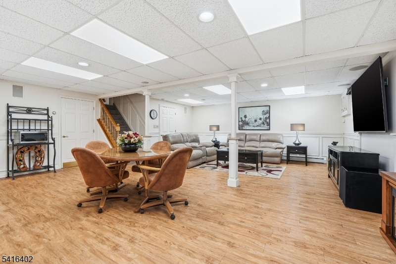 Beautifully maintained 3-bedroom, 2.5-bath split-level home located in the highly sought-after Rolling Hills section of Wayne. Beautifully landscaped property! This home greets you with a spacious foyer and an effortless flow throughout enhanced by hardwood floors (under carpet), decorative moldings, wainscoting, and recessed lighting. The bright eat-in kitchen offers 42-inch cabinetry, abundant counter space, ample storage, an exhaust vent, and a skylight that fills the room with natural light. The expansive living room boasts a stunning bay window, while the formal dining room provides the perfect setting for entertaining. A cozy, windowed sunroom, and offering direct access to the back deck. The family room features a charming wood-burning fireplace, luxury vinyl plank flooring, and built-in window benches, while the first-floor mudroom/laundry room offers convenient backyard access and is complemented by an updated powder room.Three spacious bedrooms. Hot water baseboard heating, a new roof and chimney updates (both 2025), and a whole-house fan for energy efficiency during warmer months. Finished basement includes a second kitchen with sink, permitted stove, and stainless steel refrigerator perfect for entertaining, guests-- along with a workshop and additional storage area. 2-car attached garage with ceiling fan and storage, a large shed in back, in-ground sprinklers. Just minutes from parks, the mall, dining, and NJ Transit. One of Wayne's most desirable neighborhoods!