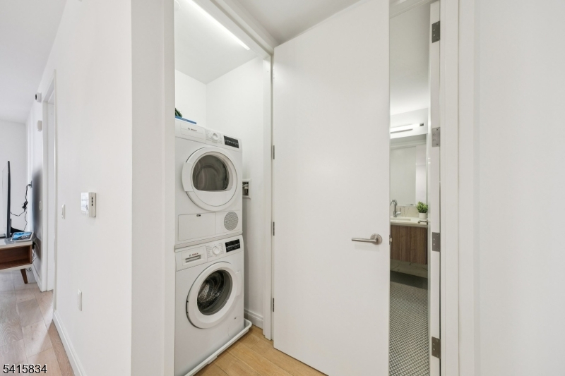 Discover sophisticated city living in this bright and spacious one-bedroom plus den residence at The Oakman, one of Downtown Jersey City's premier luxury condominiums. A private terrace extends your living space outdoors, offering the perfect retreat for morning coffee. Inside, every detail has been thoughtfully crafted, from the wide-plank white oak floors to the custom Italian Pedini cabinetry. The gourmet kitchen is equipped with high-end appliances by Bertazzoni, Bosch, and Miele, while sleek fixtures from Kohler and Hansgrohe add a refined touch. Oversized windows fill the home with natural light, creating an airy, comfortable atmosphere that feels both modern and welcoming. Residents of The Oakman enjoy resort-style amenities including a rooftop pool with BBQ grills, a state-of-the-art fitness center, children's playroom, resident lounge with fireplace, library, and convenient bike and cold storage. A 24-hour concierge and on-site garage parking (available for a fee) complete the full-service experience. Located just three blocks from the Grove Street PATH, The Oakman offers an easy commute to Manhattan and immediate access to Jersey City's best restaurants, caf s, and shops. With an abatement in place through 2036, this home combines luxury, convenience, and exceptional value in the heart of Downtown Jersey City.