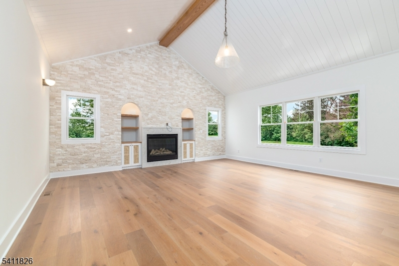 Another stunning home conceptualized & built by JTS Build & Design. This fabulous 6BR, 6FB/1HB home sits on just under half an acre level lot with a gorgeous gunite pool in the sought after Rolling Hill section of Chatham. Signature clean lines, high ceilings, designer light fixtures, & white oak flooring relay the luxury and quality that went into every design element of this new home. The GORGEOUS kitchen features a Thermador appliance package that includes a 36 inch range with double oven, custom hood, large center island & quartz countertops, all making this a chef's dream. This kitchen flows nicely into a large family room with a vaulted ceiling, custom bookcases and a stacked stone accent wall. Ideal for virtual work and situated on the main level, is an en suite BR/office. The 2nd level is home to a primary suite, 2 large walk-in closets, and spa-like bath that includes a large shower and soaker tub. 4 other large BR's, 2 bathrooms and a laundry room with custom cabinets round out the 2nd fl. The 3rd fl is a perfect space to retreat, provide a 2nd office. The ground floor includes a large rec room, gym, a bonus room and a full bath, perfectly situated close to an outside door for easy access to be used for the pool. Home has a full house generator.