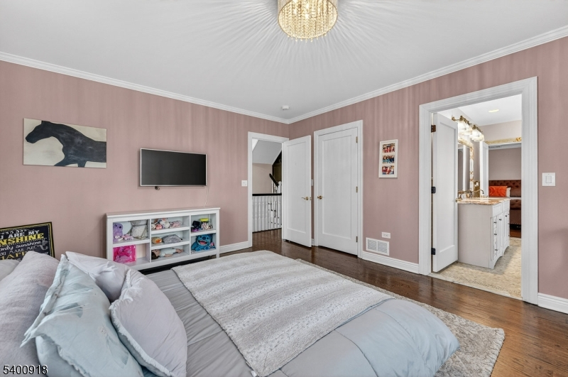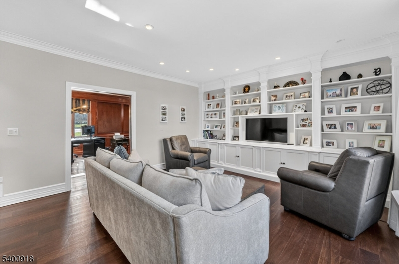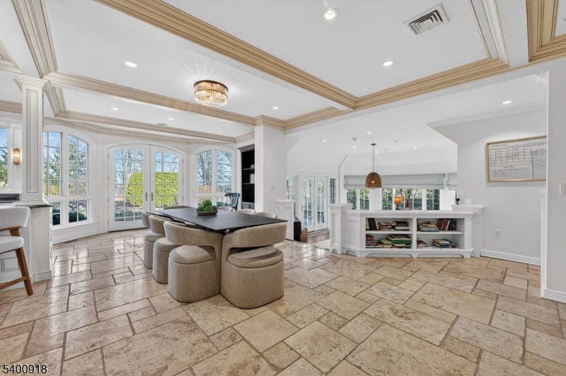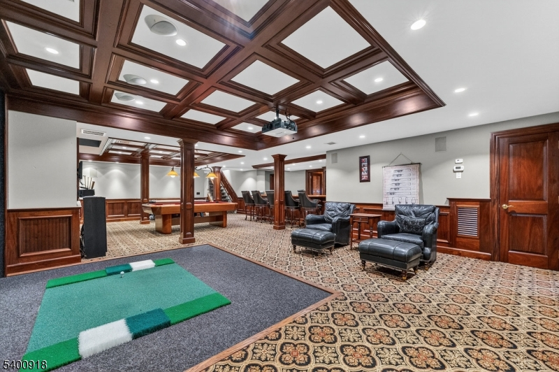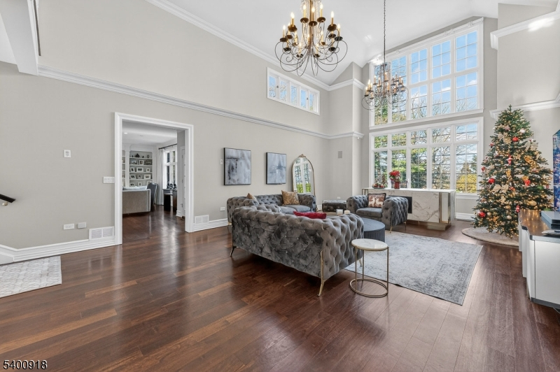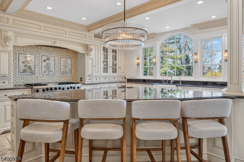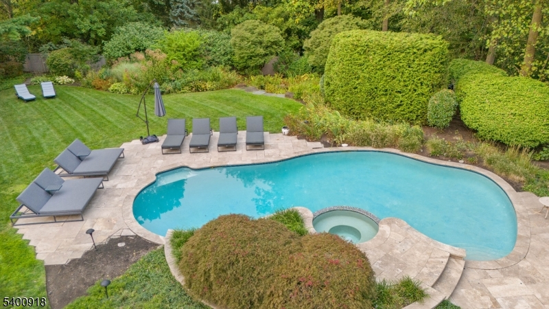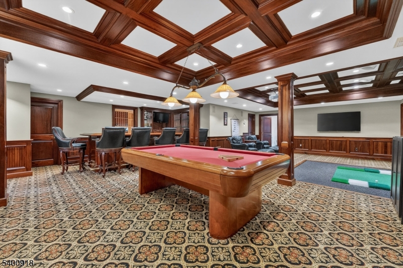 Experience resort-style living in this exceptional North Caldwell residence, where timeless craftsmanship meets modern luxury. A grand marble entry with a sweeping staircase sets the tone, complemented by soaring ceilings, deep moldings, gleaming hardwood floors, and a richly appointed mahogany library. Built with steel beam construction and surrounded by lush landscaping, water features, and mature gardens, this home radiates quality inside and out. The handcrafted Canterbury-design gourmet kitchen is a true showpiece with premium materials and thoughtful detailing, opening to a bright, year-round solarium. Upstairs, the impressive primary suite includes a spa-like bath with an oversized shower and soaking tub, while all additional bedrooms are ensuite and generously sized. The finished lower level is an entertainer's dream featuring mahogany millwork, a wine cellar, professional bar, FULL SWING GOLF PRO simulator, projection screen, exercise room, and abundant storage. Step outside to your private oasis with a custom in-ground pool with hot tub, tranquil koi pond, multiple patios, an outdoor BBQ kitchen, and beautifully landscaped grounds. Offering unmatched luxury and lifestyle, this home delivers Montclair-style living with low North Caldwell taxes just 17 miles to NYC and minutes to trains, dining, parks, and a short distance to top public school system. A rare opportunity not to be missed.
