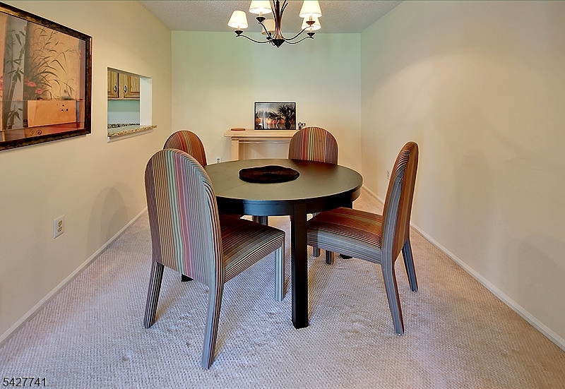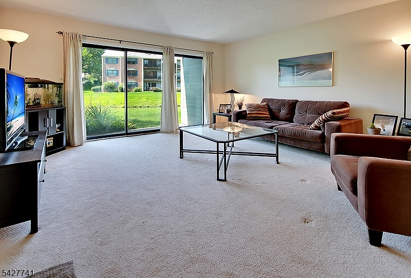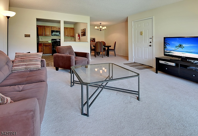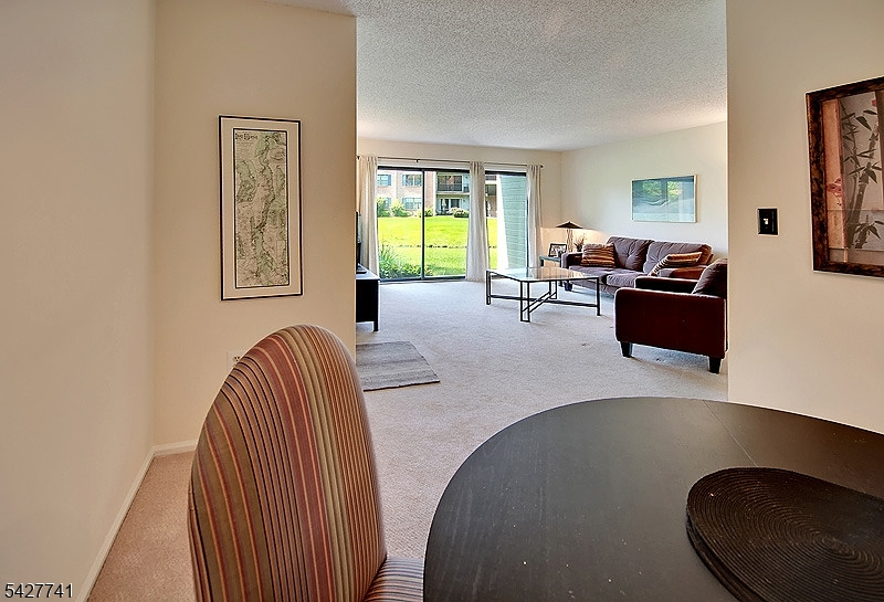 Step into this meticulously maintained, with some updates, 2-bedroom, 2-bathroom condo, perfectly positioned in Society Hill. Enjoy serene pond views from your private patio, seamlessly accessible from the spacious living room ideal for relaxing or entertaining. The eat-in kitchen features wood cabinetry, granite countertops, including a custom breakfast bar and a functional layout. A separate formal dining room adds elegance and versatility to your living space. The expansive primary suite offers a walk-in closet and an en-suite bath, while the second bedroom also includes a large closet and a hallway full bathroom. A convenient utility room houses a full-size washer and dryer. Additional perks include ample guest parking, one assigned parking spot, and a prime location close to shopping, major highways, and NYC-bound Midtown Direct trains. Nestled within a manicured 43-acre community near Pleasant Valley Park, Society Hill offers exceptional amenities including a clubhouse, in-ground pool, tennis and bocce courts, basketball court, and scenic bike paths. Located in the highly-rated Bernards Township school district, with professional property management for peace of mind. Don't miss this rare opportunity to enjoy low-maintenance living in a vibrant and amenity-rich neighborhood.